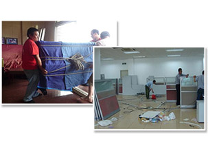 到達(dá)目的地后鋪設(shè)地板保護(hù)材料后開始工作;電器類按要求接通電源及其他線路。